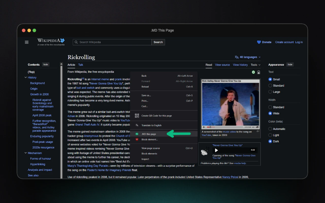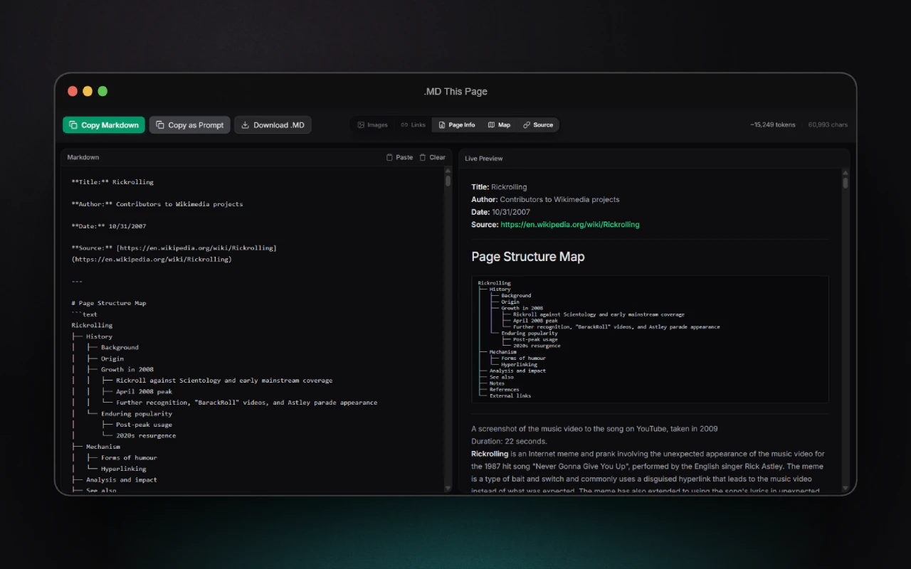 Chrome 扩展:一键把任意网页转成干净的 Markdown。